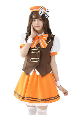 【3色/6】あす楽 ベスト付き アイドル風 メイド服 コスプレ衣装 コスチューム ハロウィン 仮装 大人用 女 レディース