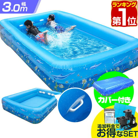 プール 大型 3m ハンドル & プールカバー 付き ビニールプール ファミリープール 3.0m 幅 300cm x 奥行き 180cm x 高さ 45cm 庭 ベランダ 電動ポンプ 空気入れ バタ足 練習 スイミング 水泳 水あそび レジャー 家庭用プール 子供用プール 1年保証 ★[送料無料][あす楽]