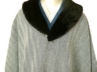 防寒ポンチョファー付き ケープ ツイードタッチ和洋兼用タイプコート 女性用フリーサイズ ライトグレー系 女性用の和洋兼用ケープタイプの防寒コートです。