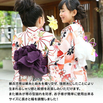 また綿糸が帯の型崩れを防ぎ、お子様が簡単に使用出来るサイズに長さと幅を調整しました!テンション高く動きまわるキッズを追いかけて着付けを何度もお直しするのは至難の業!お祭りや花火大会で、着ていて楽ちん、そして着崩れにくい浴衣帯が大活躍です。