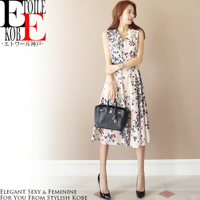 ワンピース 小花柄 ワンピ 胸元 ノースリーブ ノースリ 膝丈 ひざ丈 白 エレガント きれい目 カジュアル 着回し 上品 きれいめ 清楚 セクシーワンピース キャバワンピ 30代 韓国 服 レディース リゾート フレア 花柄 インポート 海 大人可愛い おしゃれ おしゃれ 春 夏 春夏