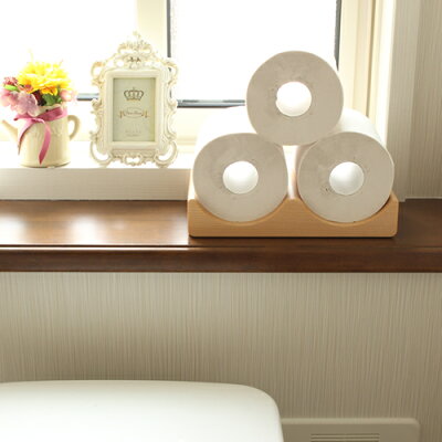 下に2つ、上に1つ積み重ねて 3個のトイレットペーパーを収納できます。