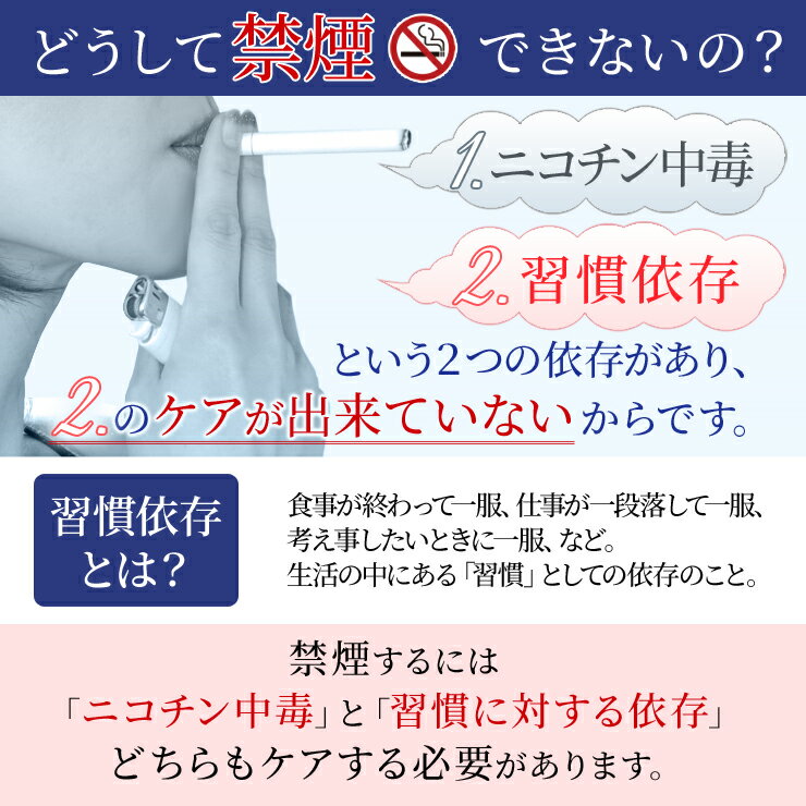 たばこ代を少なくしたい方にもおススメです 健康グッズジャンル 禁煙グッズ部門 ランキング1位 2021/1/29 341回目 禁煙グッズジャンル その他部門 ランキング1位 2020/9/1 15回目 ダイエット・健康ジャンル 禁煙健康部門 ランキング1位 2020/7/29 2回目 禁煙出来ないのには訳があります タバコへの依存は、ニコチン中毒だけでなく、見落としがちな習慣依存があるのです。