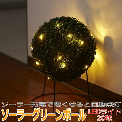 ソーラーグリーンボール LEDライト 20球 ソーラー充電 センサーライト 自動点灯 自動消灯