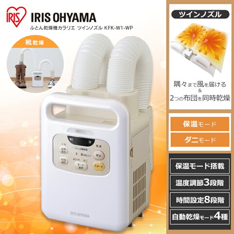 【4H限定★8,980円】布団乾燥機 ふとん乾燥機 アイリスオーヤマ KFK-W1-WP アロマ対応 布団乾燥機 カラリエ ダニ退治 ふとん乾燥機 ダニ対策 衣類乾燥 湿気 除湿 靴乾燥 梅雨対策 靴乾燥機 コンパクト ツインノズル 布団ドライヤー 衣類乾燥機 あす楽 送料無料 [2209GS]